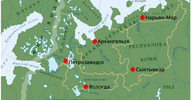 Произошло это в те века, когда Каспий был иной формы, было множество ныне неизвестных городов на севере. Посмотрите сколько их на берегах Северной Двины! Эта версия говорит, что на этой территории раньше был другой климат и она была обжитой. Кое-где даже сохранились развалины в глухих местах.