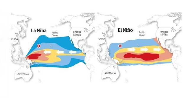 С чем связаны именно такие циркуляции воды в океанах – четких моделей нет. Есть модели эль-ниньо и ла-ниньо.