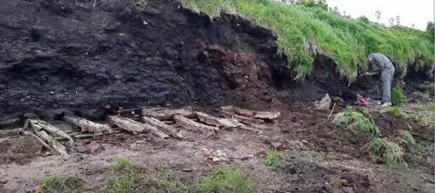 Новость, которая не получила широкой огласки. Интереса к находке археология не проявила, т.к. спустя пол года публикаций про итоги исследований или просто видео раскопок никаких нет. Итак, про что речь? В июне 2020 г. на канале Протоистория вышел короткий ролик: в Нарьян-Маре из мерзлоты оттаял древний корабль. Кадры с него: