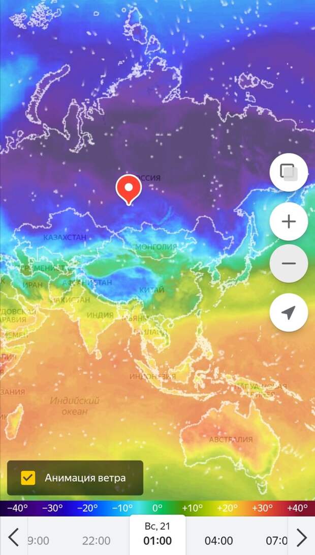 Что в это время происходит на севере Евразии, у нас? Ведь в это время в Якутии традиционно расположен полюс холода. Смотрим: