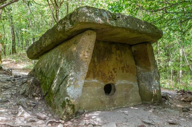 Другое объяснение – дольмены как накопители воды от родника. А в отверстие была вставлена короткая труба, через которую наполняли емкости, кувшины, ведра. Согласитесь, так удобнее набирать воду, чем черпать ее кружками из лужи в ведра.