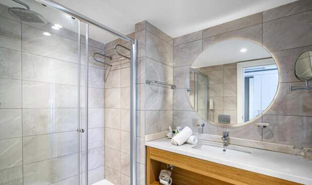 Ширина дверей (86 см) и ванная комната в номерах для инвалидов приспособлены специально для гостей пользующихся инвалидными колясками. Под раковину можно попасть на инвалидной коляске. Раковина расположена напротив входной двери в ванную комнату. Душ и унитаз оборудован специальными ручками. Хорошо работающий фен и много различных принадлежностей для гигиены, которые пополняются ежедневно (зубная паста и щетка, бритвенный набор, расческа, пилочка для ногтей, мочалка для душа, ватные диски, гель для душа, лосьон для тела, шапочка для душа, мыло, шампунь, ватные палочки, салфетки). Бонусом к приятному отдыху будет наличие тапочек и халата.