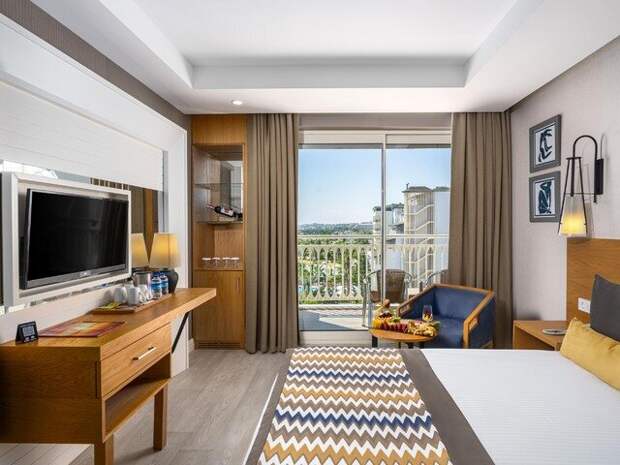 отеле Kirman Sidera Luxury and Spa 5* стандартный номерВ номере бесплатный Wi-Fi скоростной интернет до 10 Мбит/секунду. еще есть ЖК-телевизор (цифровое спутниковое телевидение), мини-бар (ежедневное бесплатное пополнение: пиво, вода, безалкогольные напитки, шоколад и чипсы), чайник и к нему чайно-кофейный набор (пополнение ежедневное), кондиционер, телефон в номере и ванной. На балконе есть плетеные кресла, стол и сушилка для белья.