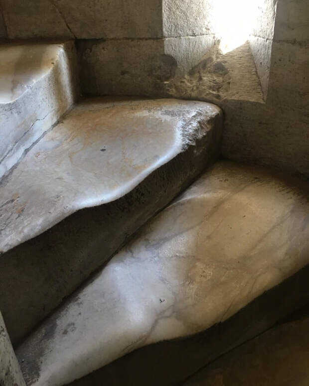 Стёртые ступени в башнях, крепостях и просто в камне.