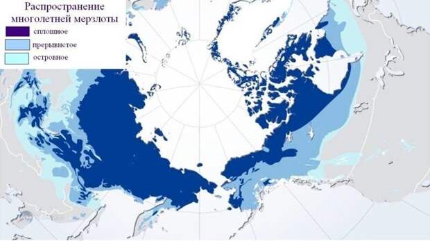 Вечная мерзлота занимает обширные пространства суши и даже шельфовых прибрежных территорий. Это не только слои льда, но и померзший грунт, иногда на глубину до 800 м.