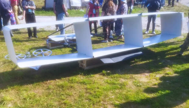 Среди представленных летательных аппаратов был привязной вертикально взлетающий на несущих роторах летательный аппарат, который потом удерживается в воздушном потоке на крыле сложной формы, как воздушный змей на леере.