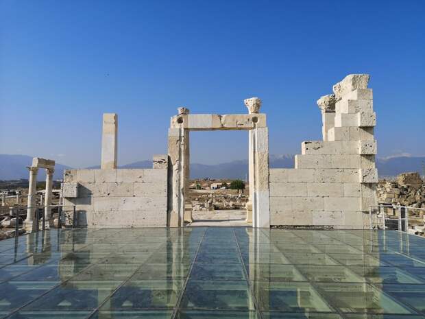 Особо важные остатки строений накрыли стеклянной крышей. Лаодикея расположена на возвышенности. И этот холм не исследован даже на четверть. С высоты сквозь грунт прослеживаются очертания фундаментов каких-то строений.
