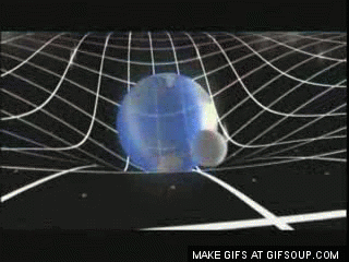 Любые массы обладают свойством искривления пространства-времени. Например, тело, двигающееся мимо другого массивного тела отклоняется в его сторону. Это искривление пространства мы воспринимаем за притяжение.