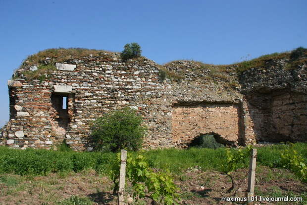 Кстати, античные строения здесь перестраивались неоднократно. Из них в прошлые эпохи, видимо, уже после катастрофы, пытались как из конструктора собрать что-то свое. Собрать, надстроить из кирпича. Известковые блоки уже не использовали. Глина была повсюду – использовать начали ее. Но уровень первоначальных строений и последующих – разнится очень сильно.