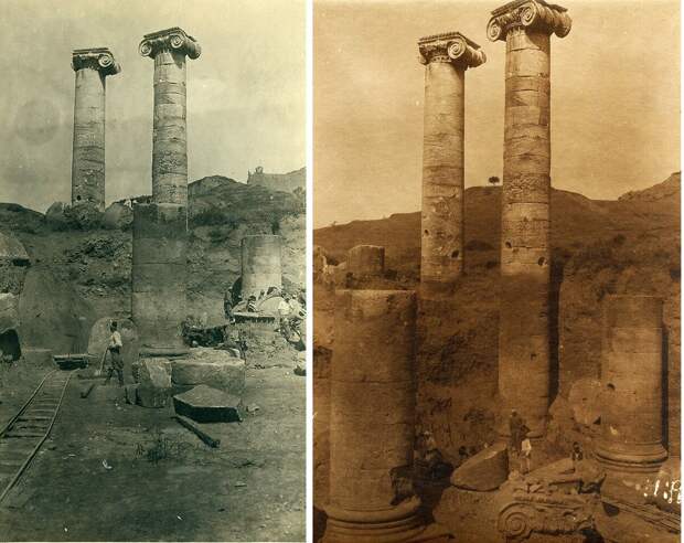 До и после. Во время раскопок и современный вид. К сожалению, почти все современные туристы не в курсе, что из себя представляли древние развалины городов до их раскопок или находок.