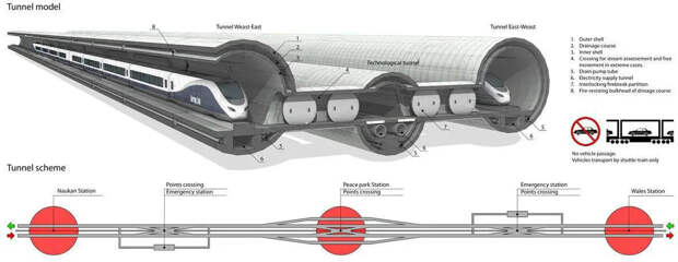 Переход из Чукотки на Аляску и обратно не ограничивался только надводным мостом. Существовало немало проектов подземных тоннелей, которые даже кажутся более реалистичными. Упоминаемый выше Кузник говорил как раз о строительстве железнодорожного и автомобильного переходов под водами Берингова пролива. История знает немало проектов подобного рода, одним из самых амбициозных стал подземный тоннель, одобренный в 1905 году самим Николаем II. Позже о соединении Евразии и Америки вспоминали чуть ли не каждое десятилетие. Причем по обе стороны Берингова пролива.