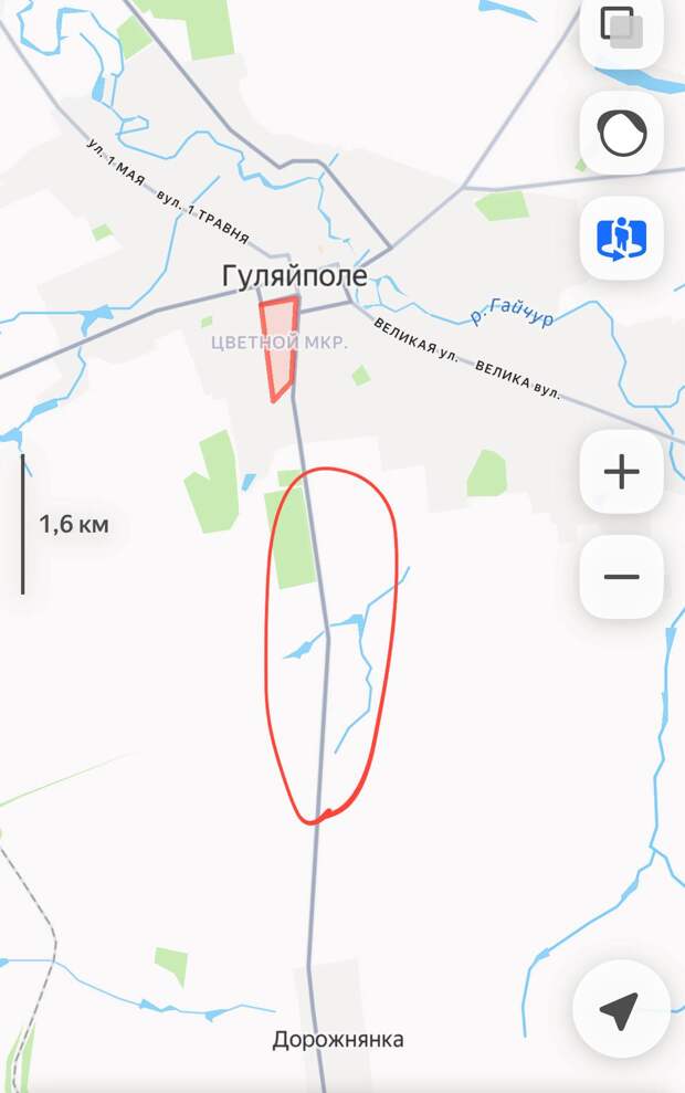 По последним оперативным сообщениям с мест, всушников выбили из центра Гуляйполя, а также под контролем нашей Армии теперь вся улица Великая. Сейчас основные боестолкновения развернулись внутри микрорайона Цветной. Полуокружение противника в Цветном постепенно сжимается. Наши войска вышли на трассу, ведущую на Дорожнянку, отсекая выход из Цветного на юго-запад по грунтовкам, пишет военкор Тимофей Ермаков.