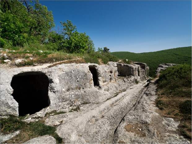 Балаклава и Эски Кермен, Крым, города в камне. Обратите внимание на колею в камне. Запомните, пригодится для понимания как это могли построить.