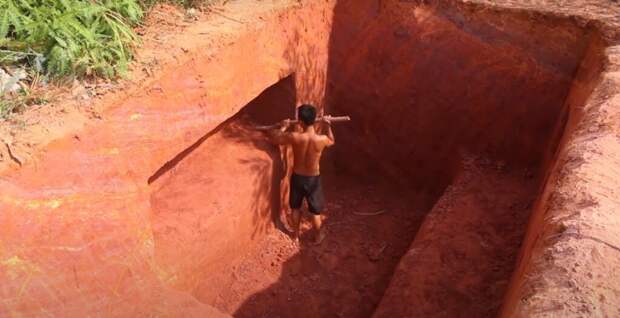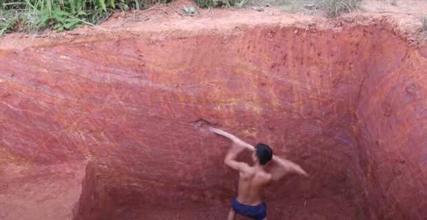 Авторы где-то в Юго-Восточной Азии строят примитивным способом различные сооружения. Возможно, через несколько лет (или десятков лет) глина их бассейна окаменеет (наберет прочность, если делать аналогию с бетонами) и будет не отличима от скального.