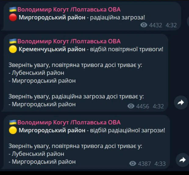 По словам Когута, в Миргородском районе Полтавщины объявлена радиационная опасность.