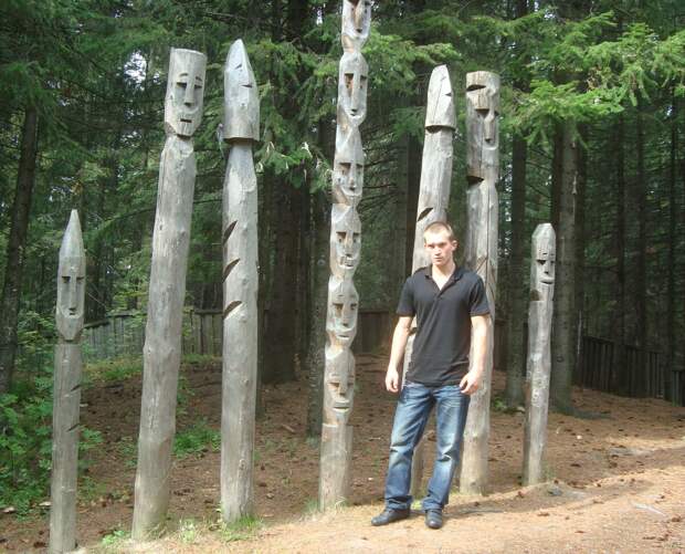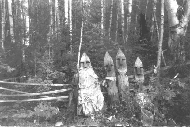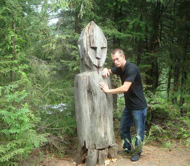Томичъ Русских: У манси есть идолы, их голова похожа как у этого на моей фотографии, они их называют - мэнквы. На богатырей похожи из-за формы головы. Заборы ставят с таким изображением.