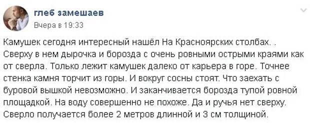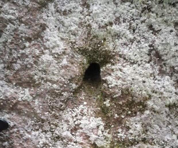В подтверждение этой версии попался пример. Посетитель Красноярских столбов сделал фотографии отверстия в каменном сиенитовом массиве: