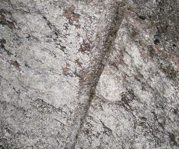 А вот если предположить, что это след, допустим от древнего бамбука или тростника который залили массы тогда еще жидкого сиенита, то наличие здесь отверстия объясняется.