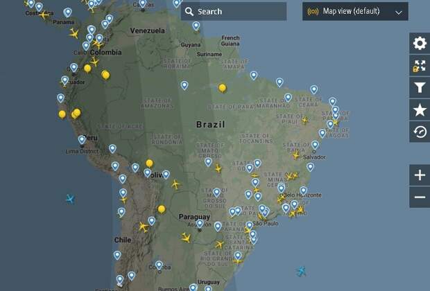 А вот над Южной Америкой – так же пустынно как и над Россией. Там низкая плотность городов. Может быть поэтому, а может быть и по причине карантина. В Аргентине точно все как и у нас: все сидят дома.