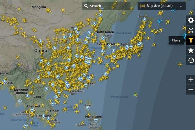 Проверял, это далеко не все транспортные самолетыНо больше всего бортов в воздухе оказалось, как всегда, над территорией США. У них, видимо, нет никаких ограничений. Либо приняты как и в Европе полумеры для телевизора.