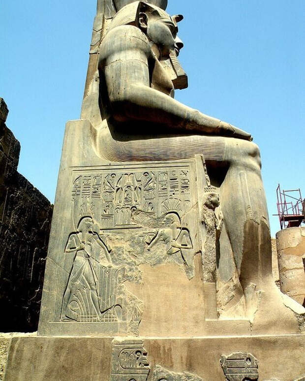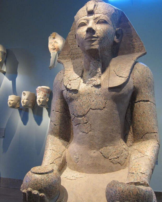 Статуи в Египте со следами отвалившейся гранитной штукатурки. Либо это следы реставрации, когда их собирали из обломков и цементировали в единую, как конструктор. Но тогда почему слой цемента сделали ниже, чем поверхность статуи? Как бы немного утопленным.