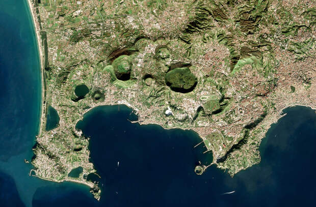На юге Италии, около Неаполя, находится уснувший супервулкан Кампи Флегреи. Это система кальдер, компактно расположенная в одной области.