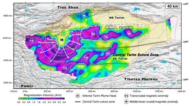 Получается, такую мощную платформу не смогло деформировать смятие континентальных плит. Исследования кратонов проводились на предмет составления геомагнитных карт местности. Выяснилось, что под песками Такла-Макан расположена конусообразная магматическая структура.