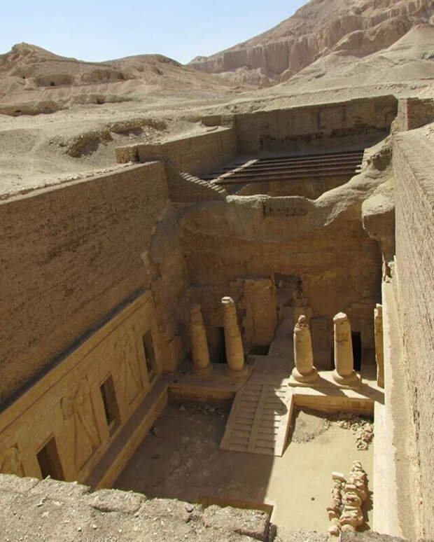 В Египте часть храмов находятся ниже уровня грунта. Или их так строили, или строения засыпало песком. Песок там с камнями и перемещение этого грунта только на ветер не отнесешь. Эти храмы - не захоронения.