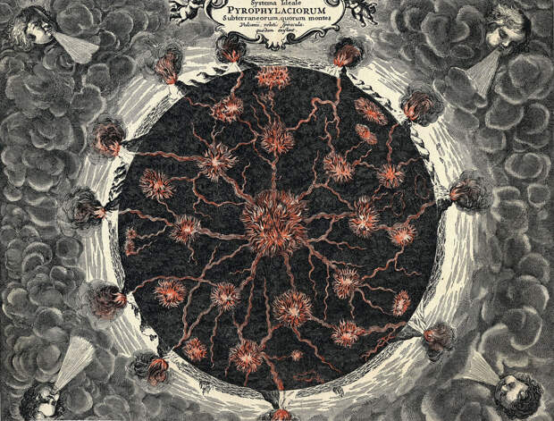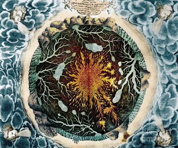 Модель строения Земли 17 века от Афанасия Кирхера: подземные моря и полые холмы