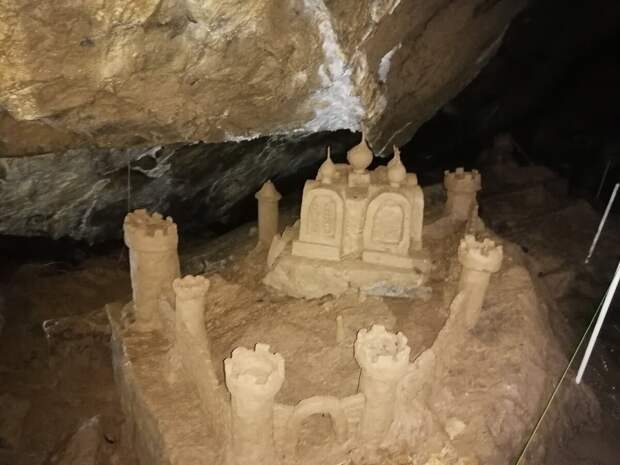 Те, кто облагораживал пещеру для туристов – слепили из отложившейся глины замки и скульптуры.
