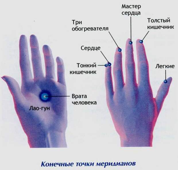 Меридианы заканчиваются у ногтевого ложа.