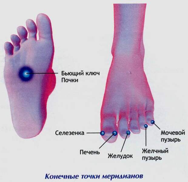Меридианы также заканчиваются на пальцах ног