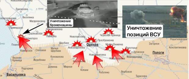 Подразделения группировки войск «Восток» продвинулись в глубину обороны противника. Нанесли поражение формированиям двух механизированных бригад, двух штурмовых полков ВСУ и бригады теробороны в районах н.п. Алексеевка, Егоровка, Орестополь Днепропетровской области, Вишнёвое и Успеновка Запорожской области.
