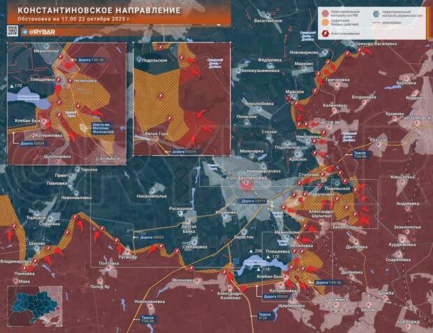 На КОНСТАНТИНОВСКОМ направлении российские войска закрепились у Иванополья и продвигаются у Клебан-Быкского водохранилища, значительно расширив зону контроля на берегах Клебан-Быкского водохранилища.