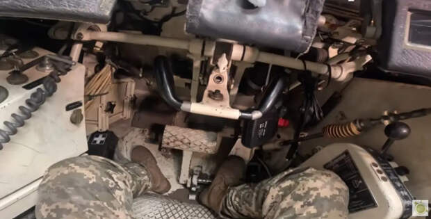 Рабочее место мехвода. Справа виден рычаг управления автоматической коробкой передач