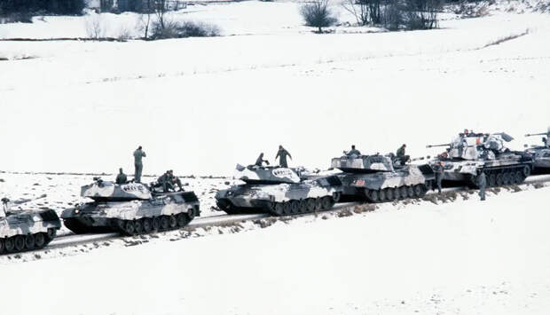 «Гепарды B2» сопровождают колонну танков Leopard 1 на учениях НАТО REFORGER 1985