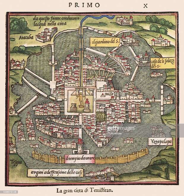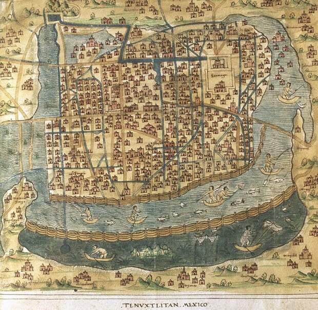 Причем, город изображали со строениями в европейском стиле. Это якобы уже после того, как Теночтитлан отстроили после разрушений Кортесом.