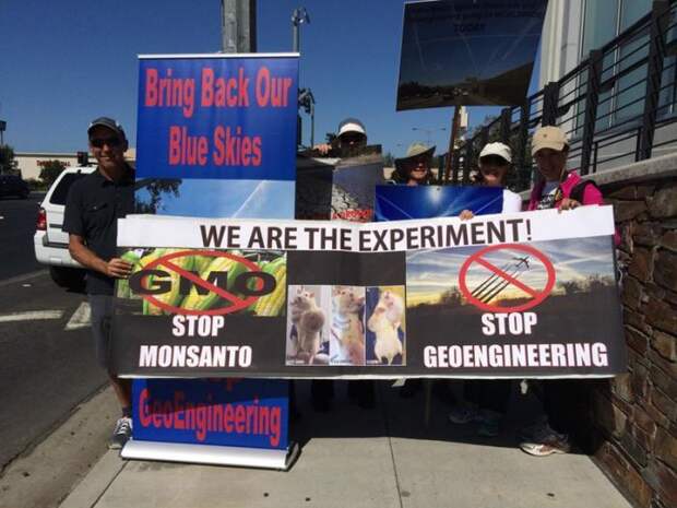 Калифорния, Глобальный марш против химикатов и геоинжиниринга. Легко видеть, что для некоторых людей проблема не в распылении чего-то в небе, а в самом факте технологически сложной человеческой деятельности