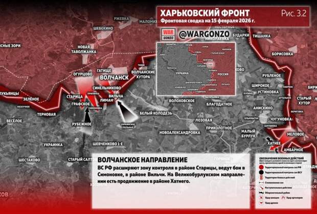 Карта СВО 15 февраля 2026 года. Волчанское направление.