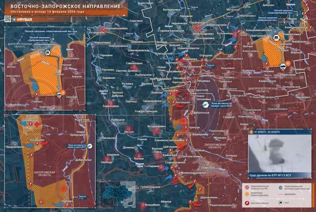 Карта СВО 15 февраля 2026 года. Запорожское направление.