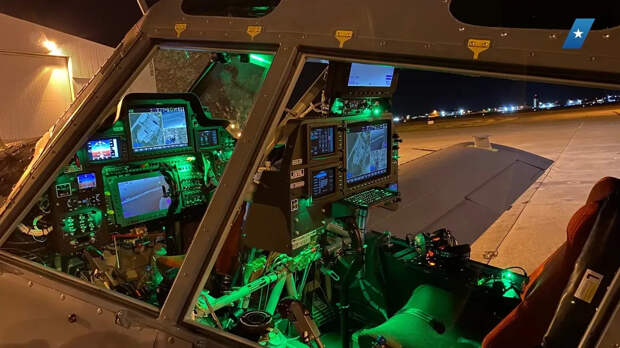 И вот здесь оператор во второй кабине, целящийся в беспилотник не из дробовика, как это делают украинские борцы с дронами, а лазерным лучом, по которому потом идет ракета, — это вполне себе серьезно.
