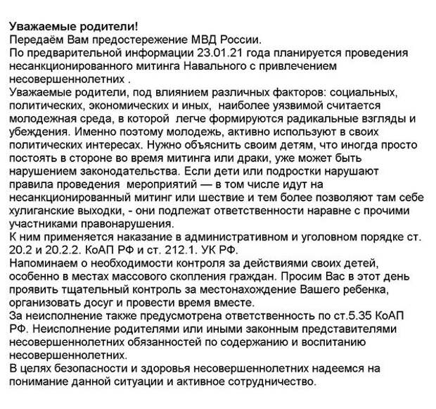 Обращение, предостережение к родителям: