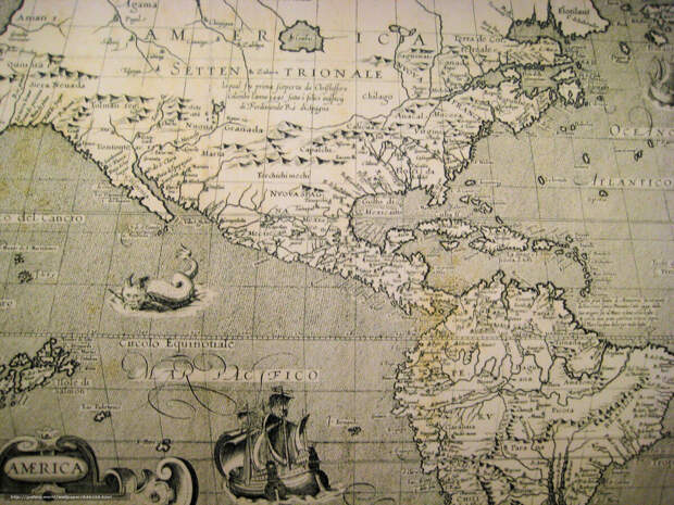 Здесь тоже в центре Северной Америки показано озеро или море. Читается как Combat. Великих озер нет на карте.