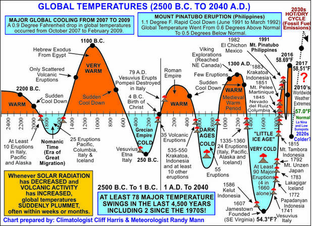 В 1600 году было 4 извержения. А всего за малый ледниковый период (до 1816 года – года без лета) – было 90 крупных извержений вулканов. И такие эпохи происходят каждые 400-900 лет.
