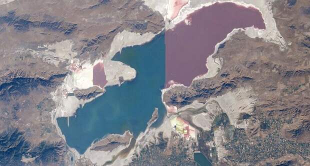 Ему даже название не придумали. Озеро мелководное и перегорожено дамбой. Одна часть более соленая. Южнее него – озеро Юта. Короткий ролик со съемкой с воздуха для понимания что это за место: