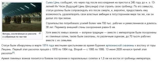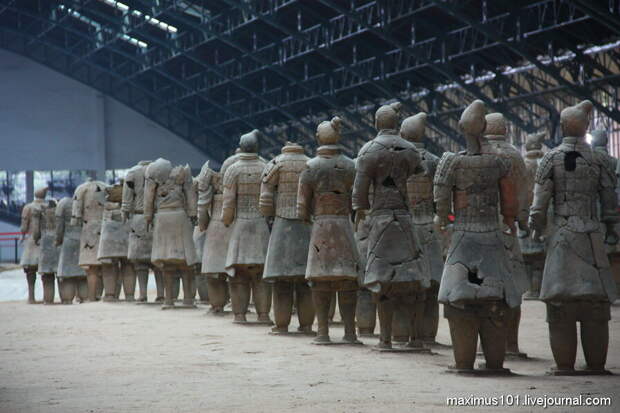 Официальная информация: как были сделаны первые находки. Историки говорят, что вся эта керамическая армия должна по представлениям императора охранять его в загробном мире. Интересная вещь религия: в молодом возрасте думаешь о загробной жизни и готовишься к ней вот в таких масштабах. Что-то похожее нам рассказывают про египетских фараонов.