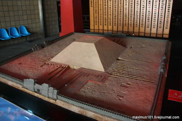 Макет надземной, подземной части этой гробницы-пирамиды и краткое описание чья это могила по исследованиям китайских историков. Как пишут – такой «муравейник» из помещений и ритуальных предметов расположен у каждой из пирамид. Так что раскопали китайские археологи у этой пирамиды?