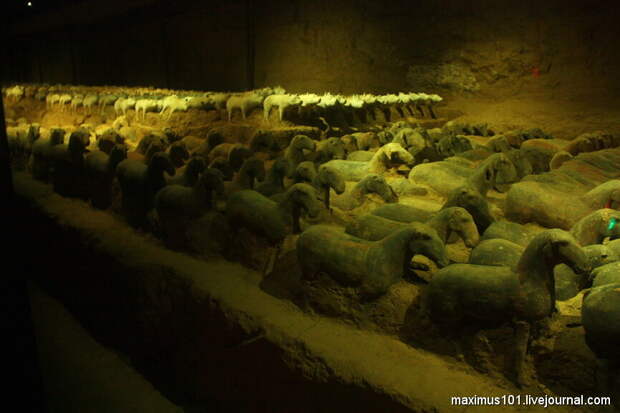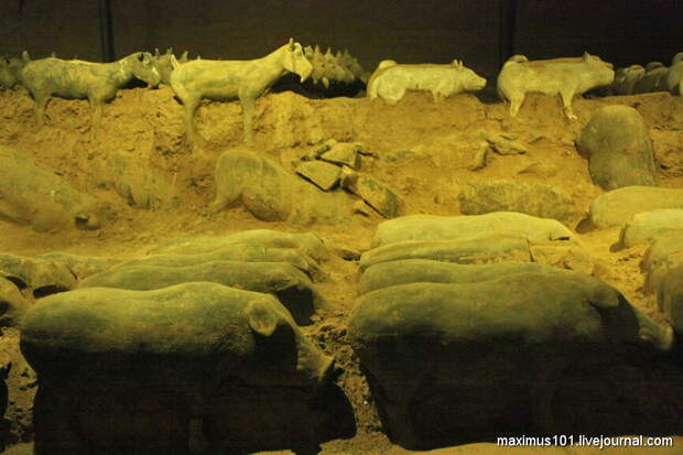 Но это не все самое интересное, что находят китайские археологи у земляных пирамид Сианя, которых насчитывается около 300 шт. Кроме терракотовых воинов, коней, находят и «стада» керамических животных и скульптур (очень напоминающие современные манекены). Это делают у захоронений других императоров, у других пирамид.
