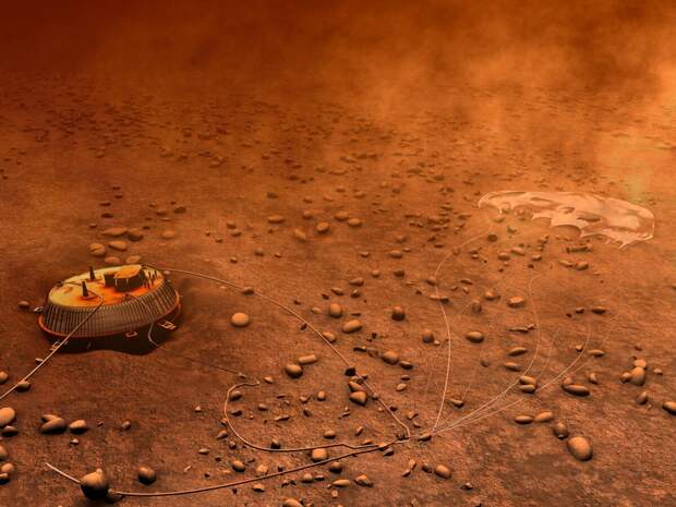 На Титан был сброшен зонд Гюйгенс, который за два с небольших часа на парашютах опустился на поверхность спутника Сатурна: