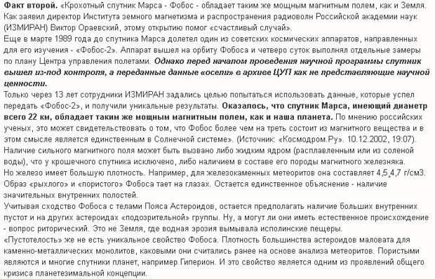 Возможно, эти фантастические версии, которые так и напрашиваются, так безуспешно пытаются проверить наши АМС Фобос? В Роскосмос до 2025 года запланирован бюджет для подготовки АМС Фобос-Грунт-2.
